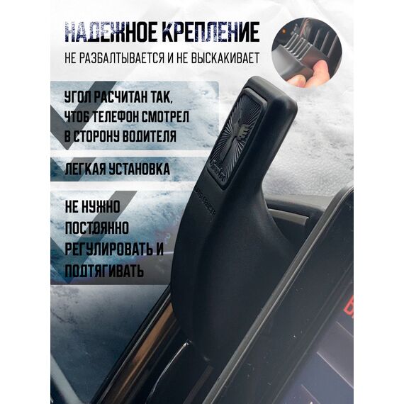Магнитный держатель телефона, автомобильный. Разработан и спроектирован специально для модели Toyota Land Cruiser 200 2015-2021 годов выпуска. Легкая установка. Надежное крепление, не разбалтывается и не выскакивает, как универсальные держатели. Мощные магниты удержат телефон весом до 500г. даже на сильных кочках. Угол установки телефона рассчитан так, чтобы телефон смотрел прямо в сторону водителя. Его не нужно постоянно регулировать и подтягивать.