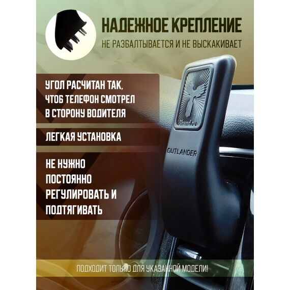 Магнитный держатель телефона, автомобильный. Разработан и спроектирован специально для модели Mitsubishi Outlander 3 2012-2022 годов выпуска.