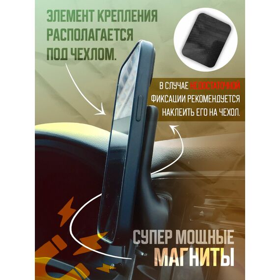 Легкая установка. Надежное крепление, не разбалтывается и не выскакивает, как универсальные держатели. Мощные магниты удержат телефон весом до 500г. даже на сильных кочках. Угол установки телефона рассчитан так, чтобы телефон смотрел прямо в лицо водителю. Его не нужно постоянно регулировать и подтягивать. Установил и забыл.