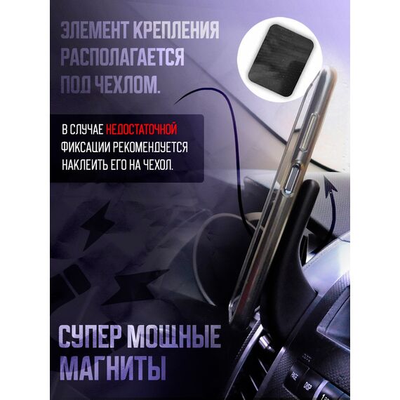 Легкая установка. Надежное крепление, не разбалтывается и не выскакивает, как универсальные держатели. Мощные магниты удержат телефон весом до 500г. даже на сильных кочках. Угол установки телефона рассчитан так, чтобы телефон смотрел прямо в лицо водителю. Его не нужно постоянно регулировать и подтягивать. Установил и забыл.