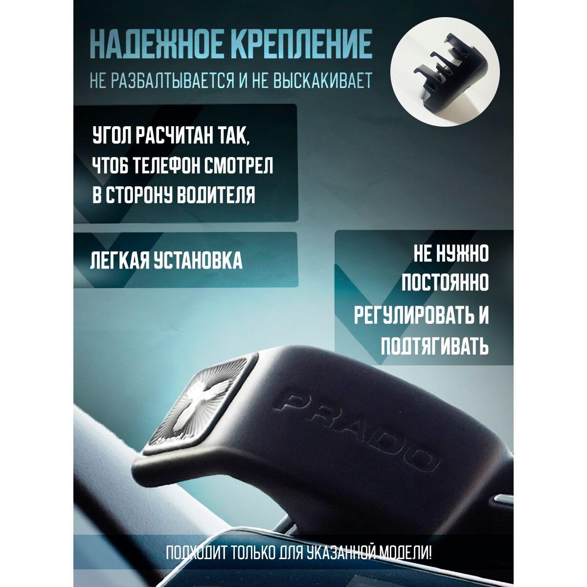 Магнитный держатель телефона, автомобильный. Разработан и спроектирован специально для модели Toyota Land Cruiser Prado 150 2017-2024 годов выпуска (2 рестайлинг). Легкая установка. Надежное крепление, не разбалтывается и не выскакивает, как универсальные держатели. Мощные магниты удержат телефон весом до 500г. даже на сильных кочках. Угол установки телефона рассчитан так, чтобы телефон смотрел прямо в сторону водителя. Его не нужно постоянно регулировать и подтягивать. Установил и забыл.