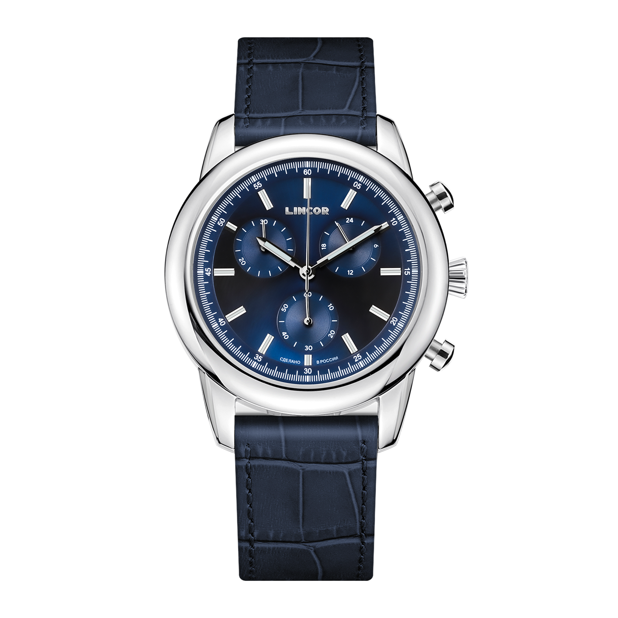 Модель отличает аккуратный, эстетичный дизайн, который станет украшением любого повседневного образа. Сглаженный 44 миллиметровый корпус и задняя крышка часов изготовлены из прочной, нержавеющей стали. Двухуровневый циферблат с хронографом защищает прочное сапфировое стекло, которое не царапается и не скалывается. Под ним отчётливо видно индексы, обрамлённые минутной шкалой. За точный ход часов отвечает многофункциональный японский кварцевый механизм Miyota JR00. Элемент питания обеспечивает надёжную работу механизма минимум 3 года. Ремешок из натуральной итальянской кожи надёжно крепится к ушкам часов и имеет классическую застёжку.
