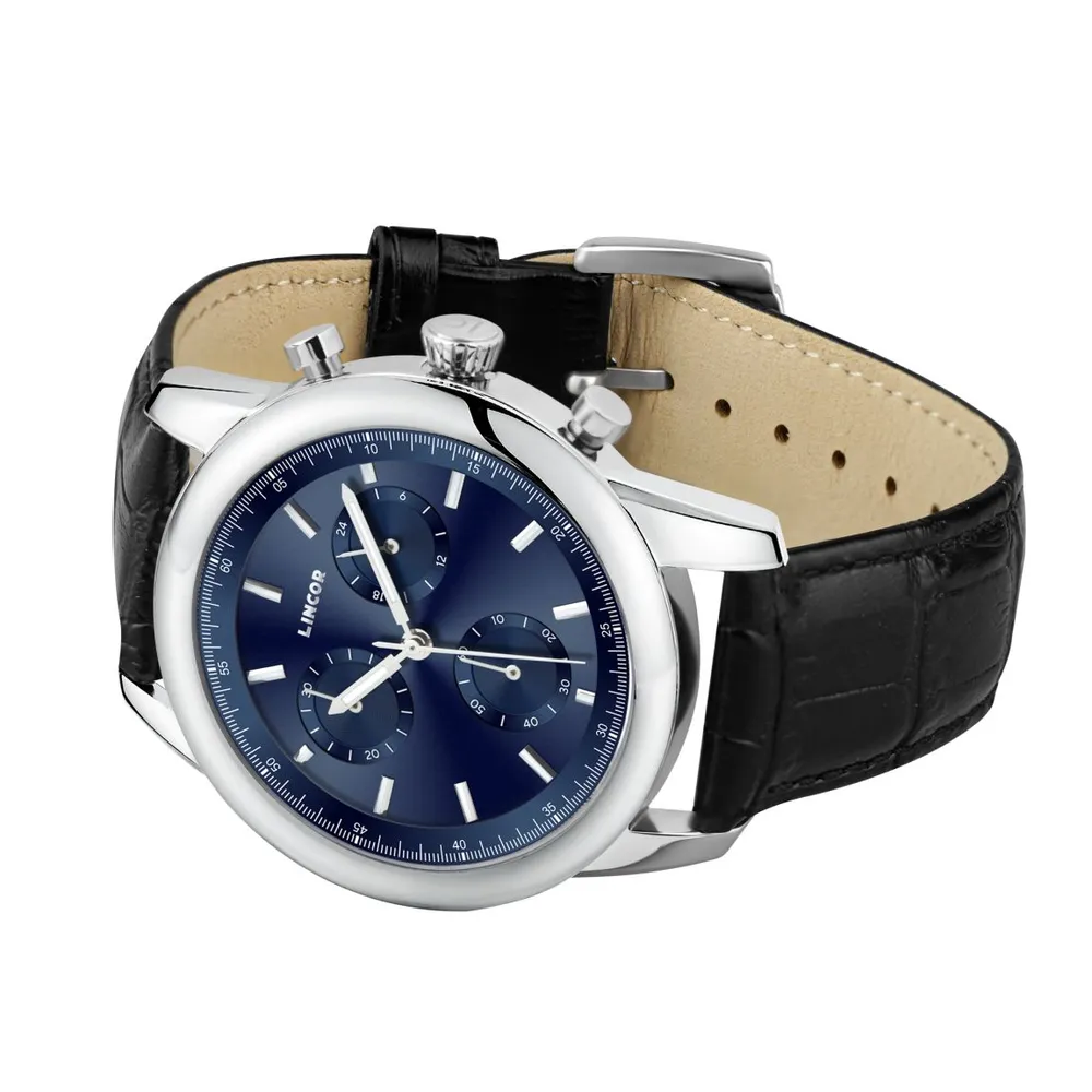 Модель отличает аккуратный, эстетичный дизайн, который станет украшением любого повседневного образа. Сглаженный 44 миллиметровый корпус и задняя крышка часов изготовлены из прочной, нержавеющей стали. Двухуровневый циферблат с хронографом защищает прочное сапфировое стекло, которое не царапается и не скалывается. Под ним отчётливо видно индексы, обрамлённые минутной шкалой. За точный ход часов отвечает многофункциональный японский кварцевый механизм Miyota JR00. Элемент питания обеспечивает надёжную работу механизма минимум 3 года. Ремешок из натуральной итальянской кожи надёжно крепится к ушкам часов и имеет классическую застёжку.