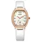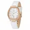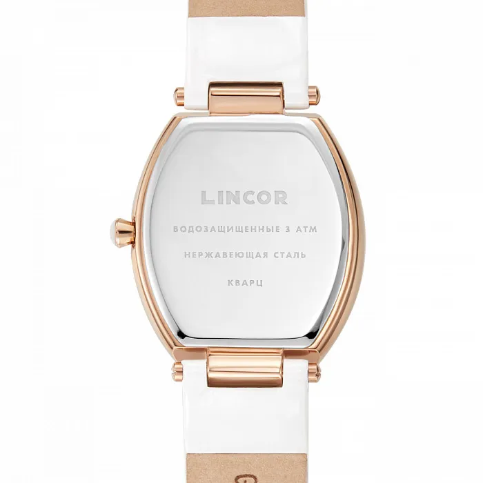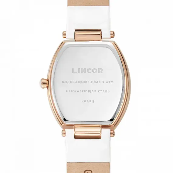 На перламутровом циферблате выделяются золотые часовые индексы. Это помогает легко считывать показания. Дополняют композицию ажурные золотые стрелки, которые поддерживают баланс двух цветов.
