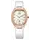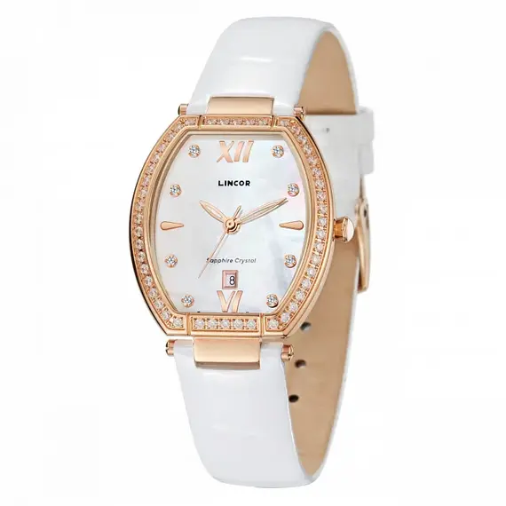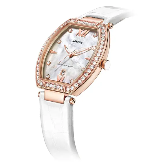 Элитная женская коллекция отказывается от традиционного круглого корпуса и получает инкрустированную фианитами «бочку». Ее стальной корпус шириной 30 миллиметров покрыли золотом высокой пробы.