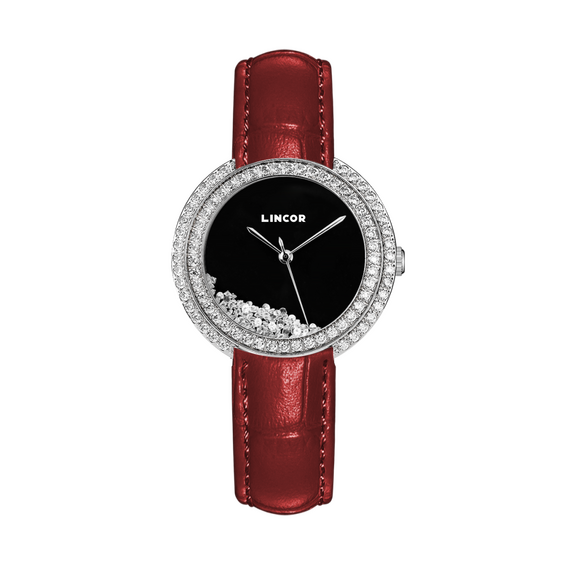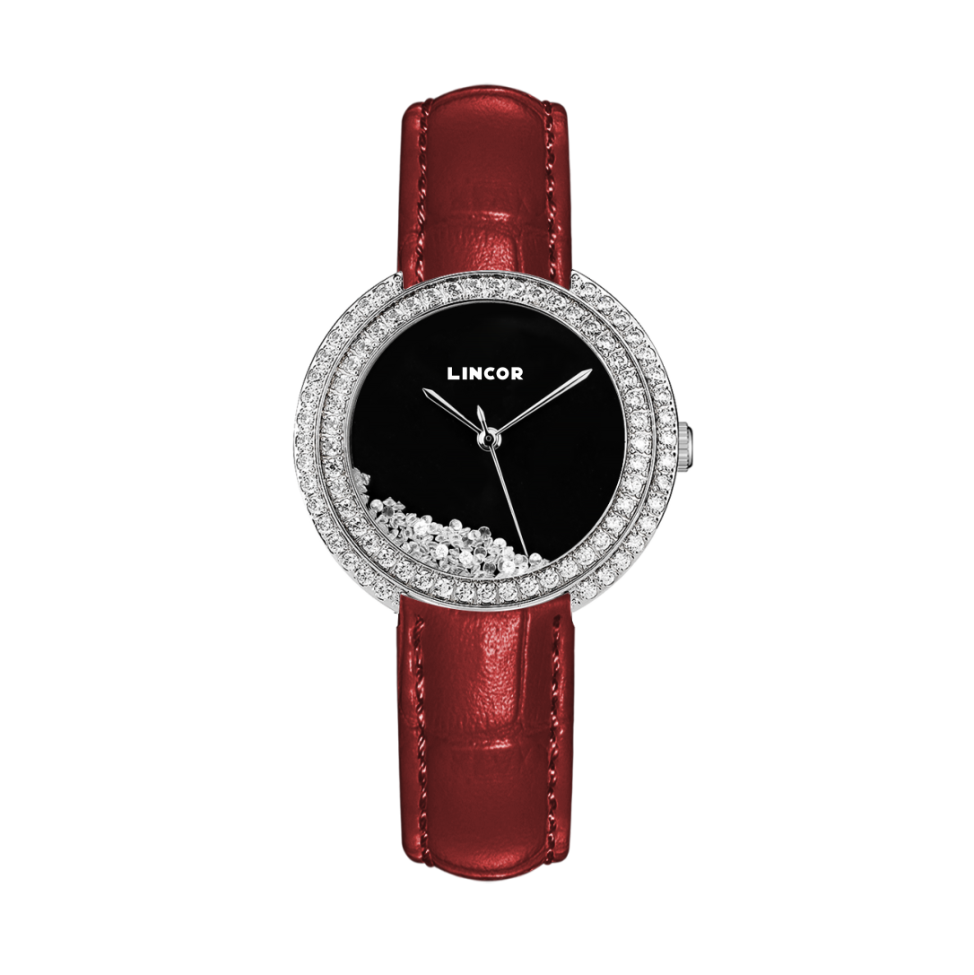 Женские вечерние часы, которые никого не оставят равнодушным. Благодаря инкрустированным фианитам в стальной корпус изделие роскошно переливается на свету, а при любом движении руки фианиты, помещенные россыпью между минеральным закалённым стеклом и лаконичным циферблатом, игриво перемещаются по поверхности. За точность хода отвечает японский кварцевый механизм Miyota с предустановленным элементом питания, а дополняет образ модели элегантный ремешок из натуральной кожи с тиснением под крокодила.