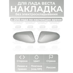 Накладки на зеркала Vesta – это запчасти боковых зеркал у Лада Веста 2180. Материал детали из пластика высокого качества. Цвет: Платина, светло-серый. Код краски: 691. Комплект: правая. Подходит для автомобилей: для ВАЗ 2180 (Lada Vesta). Подходит для Лада Веста первого поколения (старого...
