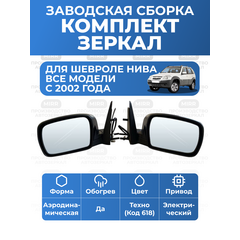 Комплект боковых зеркал заднего вида в машину с накладкой цвета Техно (код краски 618) для Нива Шевроле (GM 2123). В набор входят левое и правое зеркала заднего вида нового образца (рестайлинг), предназначенные для штатной установки на автомобили Schevrolet. Зеркала оснащены обогревом и...