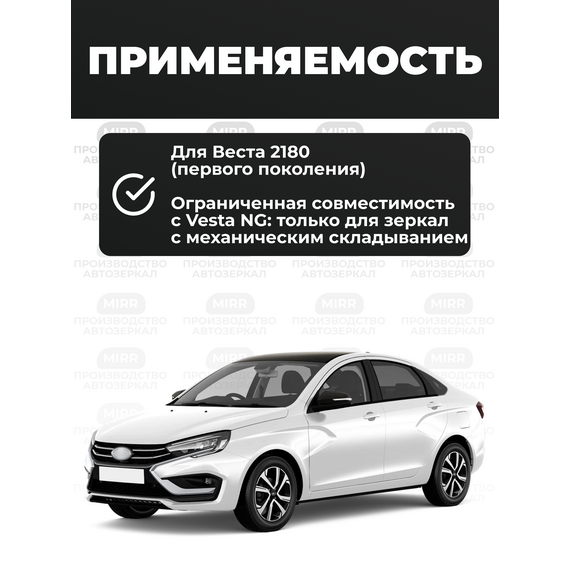 Накладки на зеркала Vesta – это запчасти боковых зеркал у Лада Веста 2180. Материал детали из пластика высокого качества. Цвет: Маэстро, черный. Код краски: 653. Комплект: левая и правая. Подходит для автомобилей: для ВАЗ 2180 (Lada Vesta). Подходит для Лада Веста первого поколения (старого образца) ВАЗ 2180. На Лада Веста NG ВАЗ 2181 нового поколения подходит, только если зеркала с механическим складыванием. Для зеркал с электроскладыванием у Лада Веста NG не подходит. Накладки на боковые зеркала предусмотрены для замены сломанной или пришедшей в негодность запчасти. Надежность крепления детали и простата в установке – особенности данной детали на зеркало лада веста. Если ваши накладки зеркал веста пришли в негодность, то данная облицовка корпуса зеркала способствует восстановлению функциональности автомобиля. Качественная облицовка зеркала Веста позволяет вашему автомобилю приобрести превосходный внешний вид.