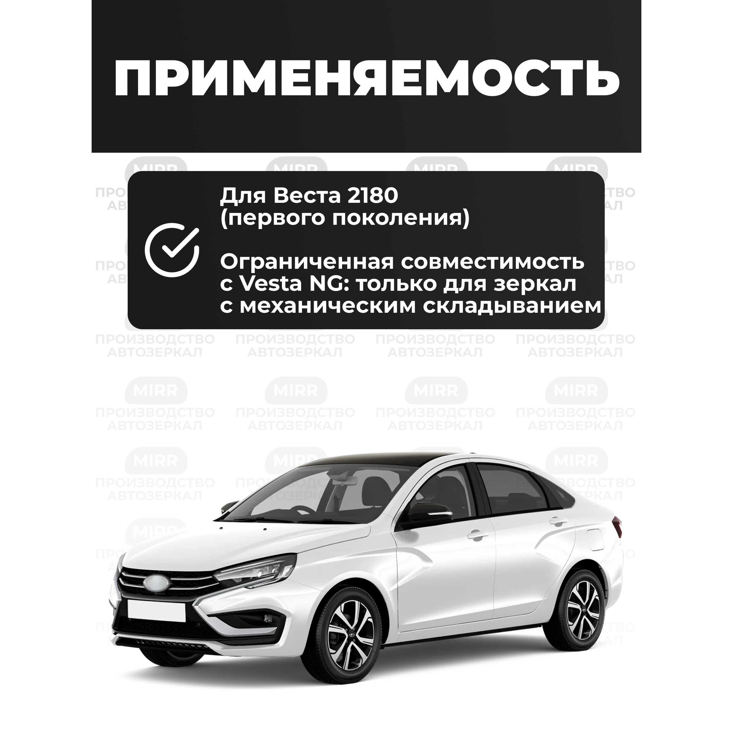 Накладки на зеркала Vesta – это запчасти боковых зеркал у Лада Веста 2180. Материал детали из пластика высокого качества. Цвет: Неокрашенный, черный. Комплект: левая и правая. Подходит для автомобилей: для ВАЗ 2180 (Lada Vesta). Подходит для Лада Веста первого поколения (старого образца) ВАЗ 2180. На Лада Веста NG ВАЗ 2181 нового поколения подходит, только если зеркала с механическим складыванием. Для зеркал с электроскладыванием у Лада Веста NG не подходит. Накладки на боковые зеркала предусмотрены для замены сломанной или пришедшей в негодность запчасти. Надежность крепления детали и простата в установке – особенности данной детали на зеркало лада веста. Если ваши накладки зеркал веста пришли в негодность, то данная облицовка корпуса зеркала способствует восстановлению функциональности автомобиля. Качественная облицовка зеркала Веста позволяет вашему автомобилю приобрести превосходный внешний вид.