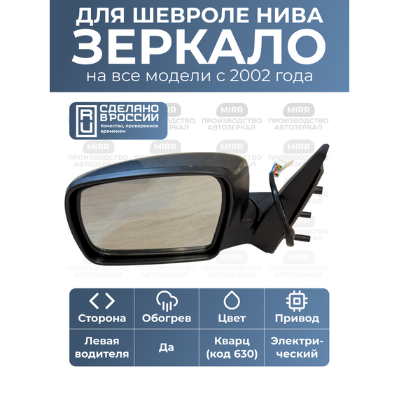 Боковое зеркало заднего вида в машину с накладкой цвета Кварц (код краски 630 ) для Нива Шевроле 2123 (левая сторона). Это зеркало заднего вида нового образца (рестайлинг), предназначенное для штатной установки на автомобили Schevrolet. Зеркало оснащено обогревом зеркала и электроприводом, что обеспечивает комфорт и безопасность в любых погодных условиях. Подходит для моделей Тревел. Зеркало автомобильное произведено в России, соответствует высоким стандартам качества.