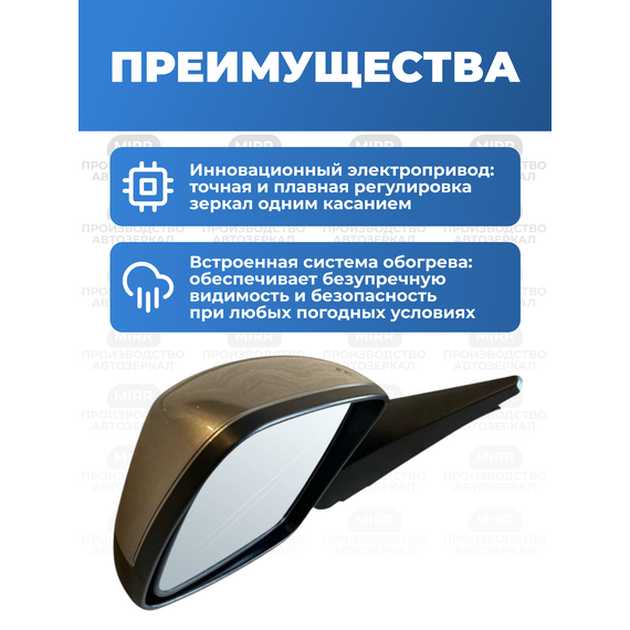 Боковое зеркало на Шевроле 2123 левое цвет Техно 618 нового образца с электроприводом и обогревом