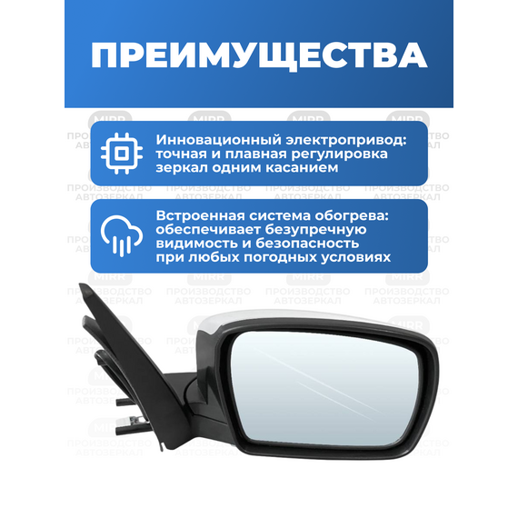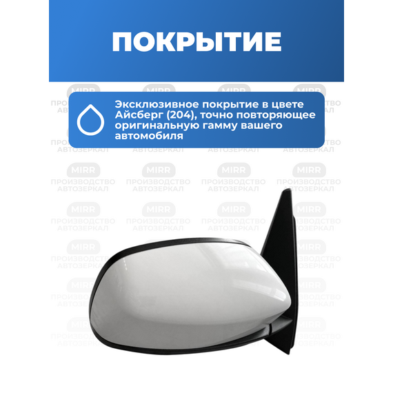 Боковое зеркало на Шевроле 2123 правое цвет Айсберг 204 нового образца с электроприводом и обогревом