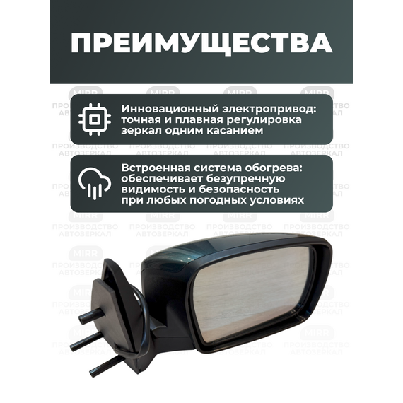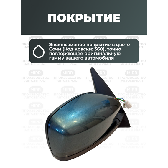 Боковое зеркало на Шевроле 2123 правое цвет Сочи 360 нового образца с электроприводом и обогревом