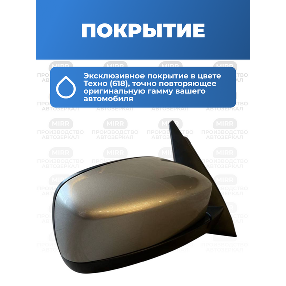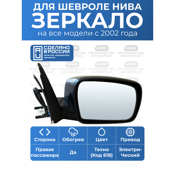 Боковое зеркало на Шевроле 2123 правое цвет Техно 618 нового образца с электроприводом и обогревом