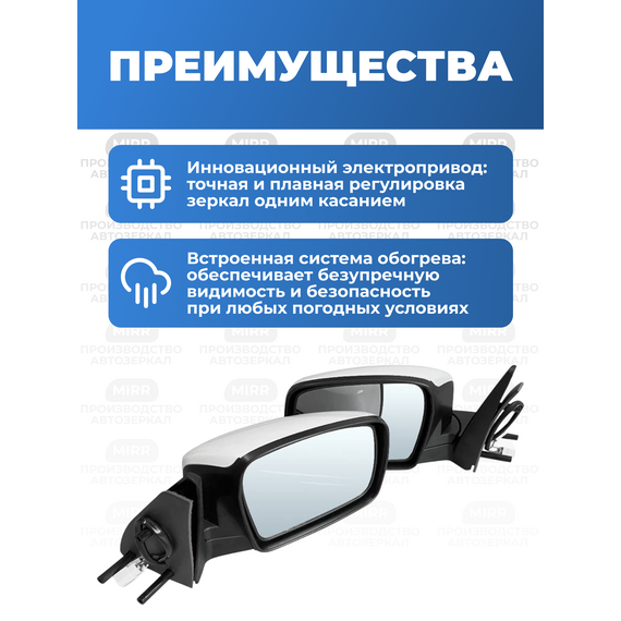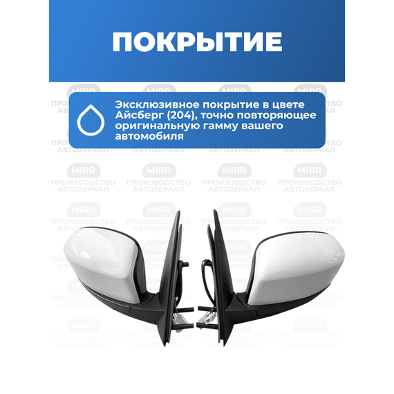 Боковые зеркала комплект(прав+лев) для Шевроле 2123 цвет Айсберг 204 нового образца с электроприводом и обогревом
