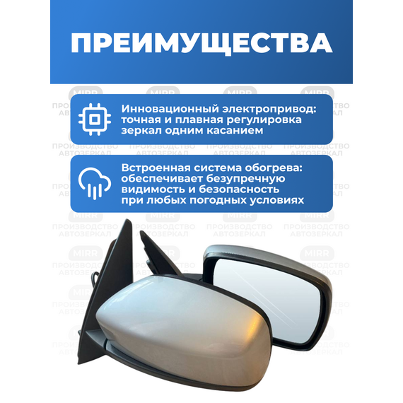 Боковые зеркала комплект(прав+лев) для Шевроле 2123 цвет Снежная королева 690 нового образца с электроприводом и обогревом