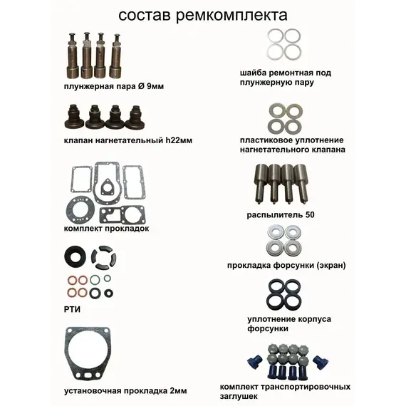 Ремкомплект для ремонта топливного насоса и форсунок д-240, д-65,смд-18 (полный)Плунжерная пара 9мм, клапан нагнетательный 22мм, распылитель 50