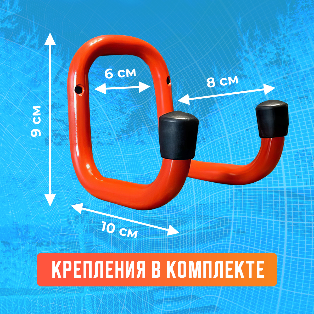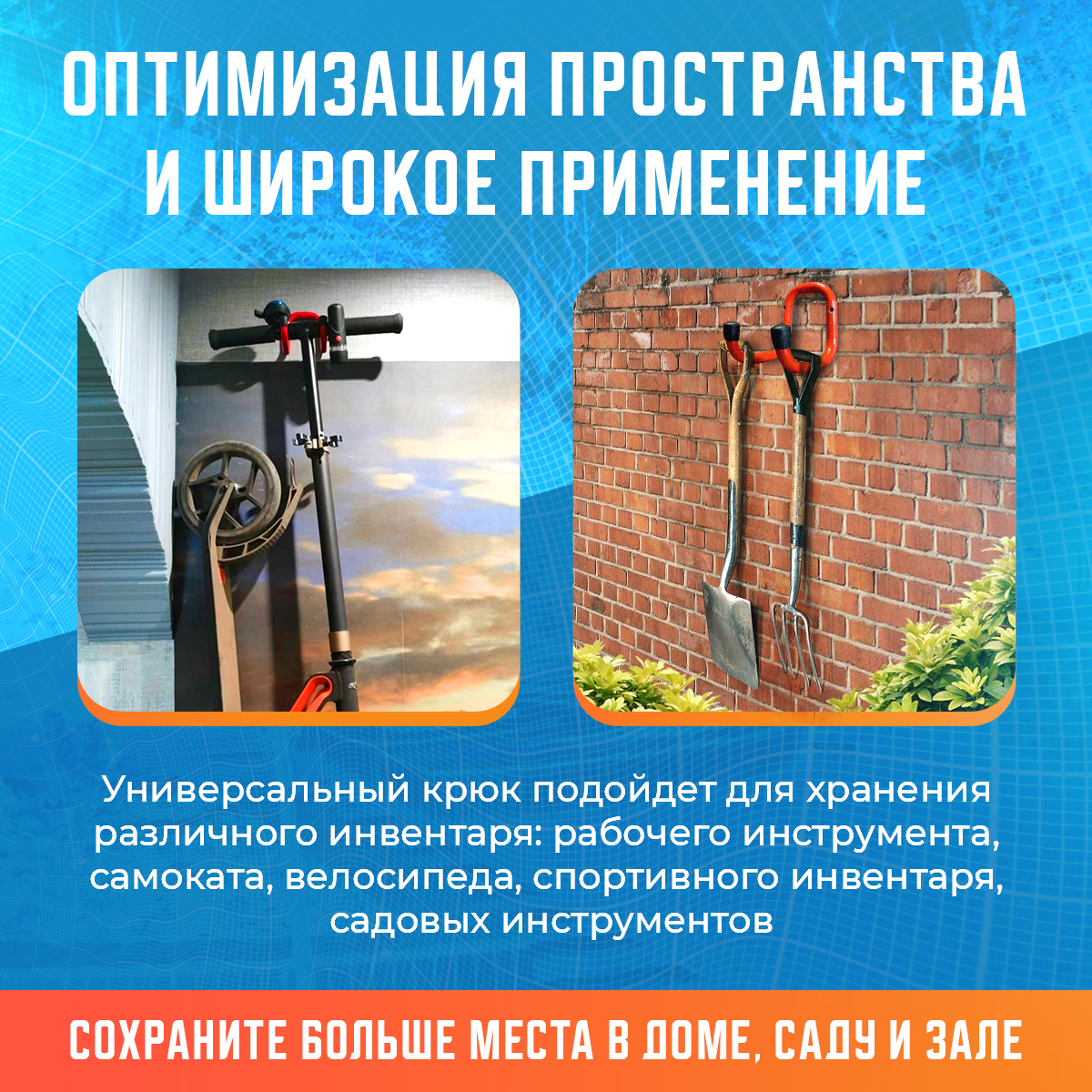 Универсальный крючок для хранения велосипеда, самоката, садовых инструментов, строительных инструментов и многого другого - это идеальное решение для оптимальной организации хранения различных инструментов и устройств. Универсальный держатель оборудован специальным противоскользящим покрытием, которое обеспечивает надежное удержание инструмента или устройства. Это гарантирует безопасное хранение. Крючок покрыт качественным порошковым покрытием, которое защищает его от коррозии и механических повреждений. Это обеспечивает долговечность изделия и сохраняет его внешний вид на протяжении длительного времени.