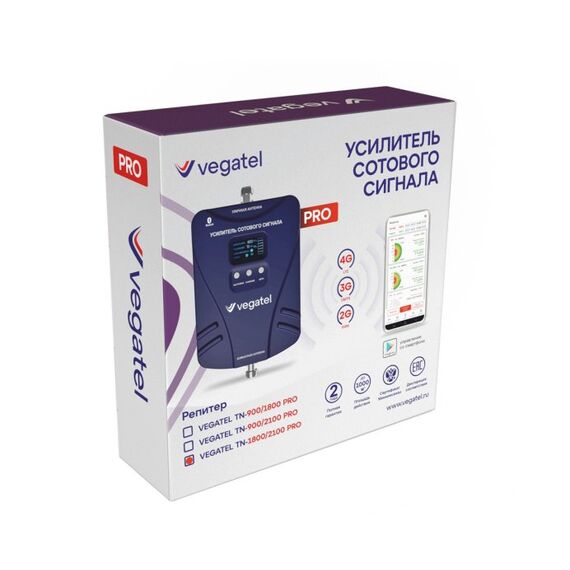 Репитер VEGATEL TN-1800/2100 PRO усиливает 2G,3G и 4G сигналы всех сотовых операторов на частоте 1800 и 2100 МГц и решает проблему нестабильного мобильного интернета и сотовой связи на объектах до 1000* кв.м: в квартирах, домах и коммерческих строениях.