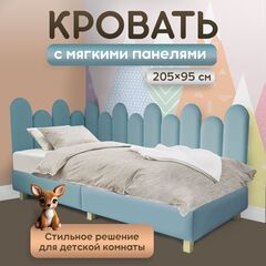 DOSS-MEBEL Односпальная кровать детская, комплект с мягкими панелями, 90*200 см, велюр синий