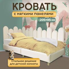 DOSS-MEBEL Односпальная кровать детская, комплект с мягкими панелями, 90*200 см, велюр молочный