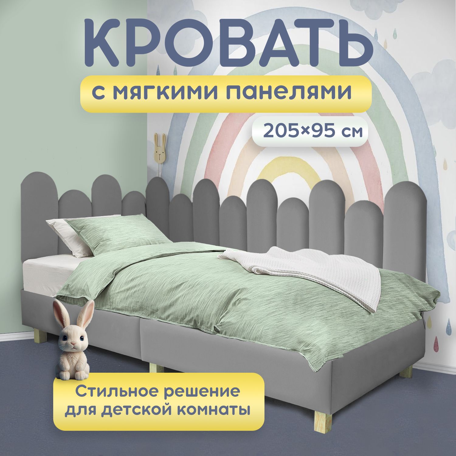 DOSS-MEBEL Односпальная кровать детская, комплект с мягкими панелями, 90*200 см, велюр серый