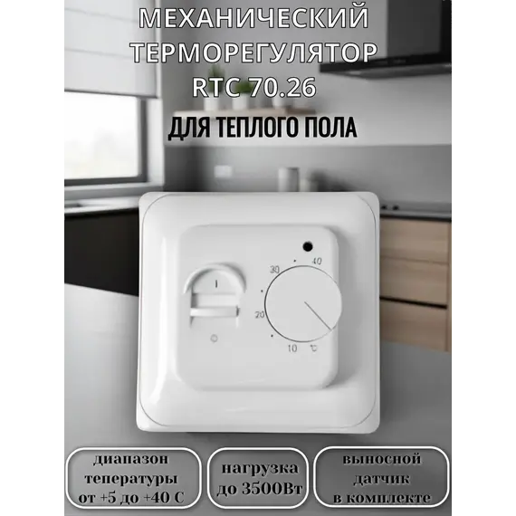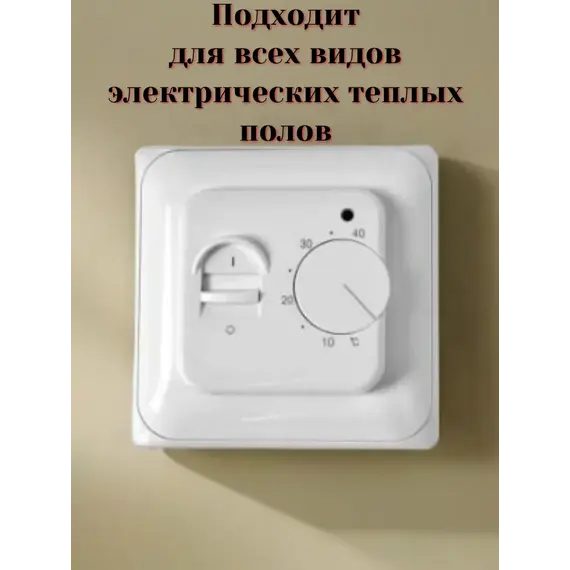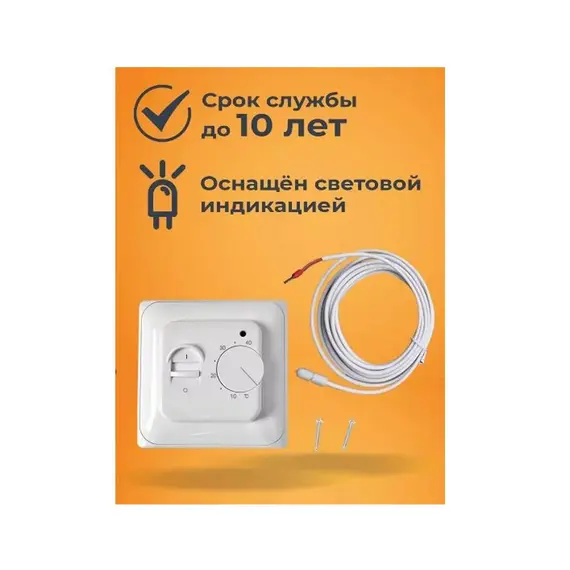 Терморегулятор механический c датчиком температуры пола предназначен для регулирования и поддержания установленной температуры полов с подогревом. Терморегулятор для теплого пола прост и надёжен в использовании. Имеет широкий диапазон установки температуры от +5 C до +40 C.** У механического термостата очень простой функционал в интерфейс ничего лишнего: кнопка вкл/выкл и колесико с выставлением температуры.Термостат комнатный сделан в эргономичном (встраивается в стандартную монтажную коробку) и стильном дизайне - подойдет под любой интерьер. Выносной датчик пола имеет длину 3 метра, его также можно укорачивать или наращивать. Терморегулятор с датчиком температуры с классом защиты IP-20 рекомендуется не подвергать воздействию воды.