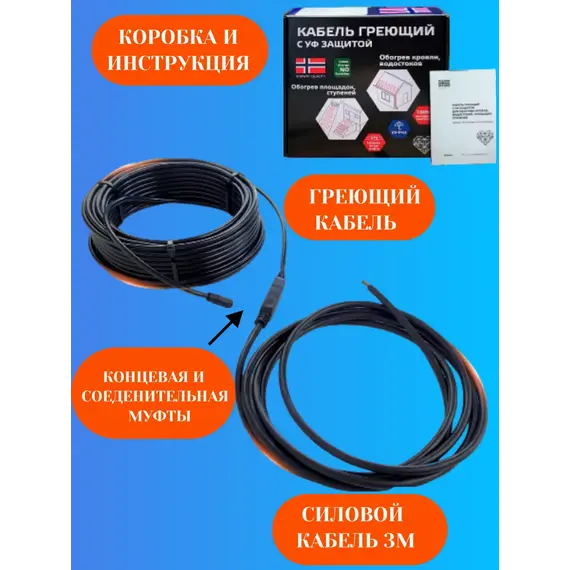 Греющий кабель для обогрева ступеней, площадок, кровли 63м