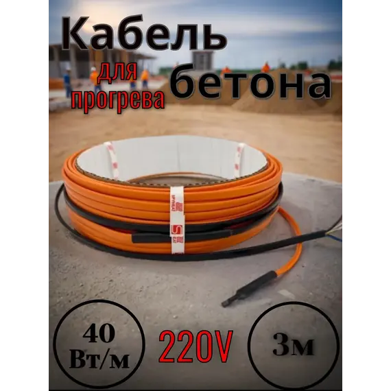 кВт (от 0,8 до 1,5 кВт) мощностb. Нагревательная секция подключается напрямую к питающему напряжению 220 Вольт. После набора бетоном прочности установочный (питающий) кабель отрезается.