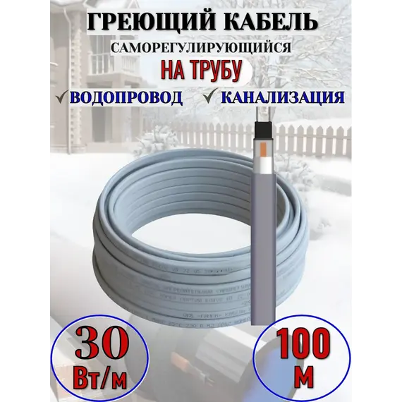 подходит для обогрева трубопровода крупного диаметра 60-110 мм, при 'воздушной прокладке' (с хорошей изоляцией), 30 Вт/пог. м. Не экранированный (без заземления). Оболочка модифицированный полиофелин. Прокладка снаружи трубы.