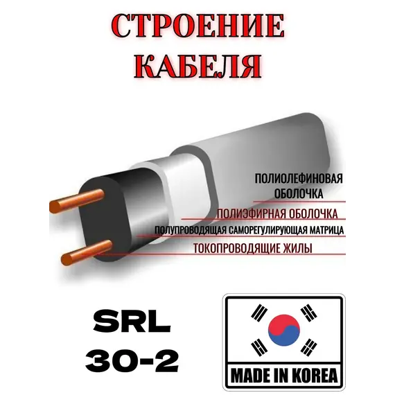 Кабель SRL 30-2 продается на отрез, указанному размеру в название.Саморегулирующийся кабель SRL30-2: