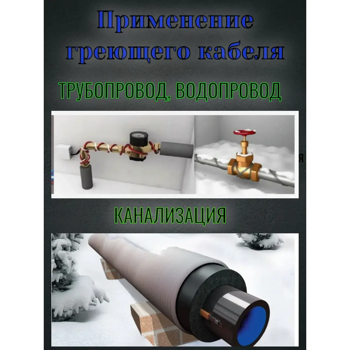 подходит для обогрева трубопровода крупного диаметра 60-110 мм, при 'воздушной прокладке' (с хорошей изоляцией), 30 Вт/пог. м. Не экранированный (без заземления). Оболочка модифицированный полиофелин. Прокладка снаружи трубы.