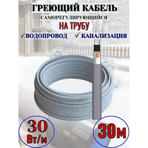 подходит для обогрева трубопровода крупного диаметра 60-110 мм, при 'воздушной прокладке' (с хорошей изоляцией), 30 Вт/пог. м. Не экранированный (без заземления). Оболочка модифицированный полиофелин. Прокладка снаружи трубы.