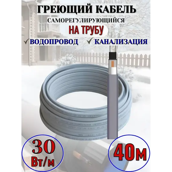 Саморегулирующийся греющий кабель на трубу 40 м