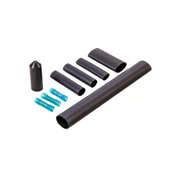Комплект заделок для саморегулирующего кабеля состоящий из термоусадки ( коэффициент усадки 4:1, ОБЯЗАТЕЛЬНО с клеевым слоем), гильз на 2,5 кВт (в нейлоне), клеевого колпачка и инструкции по монтажу!