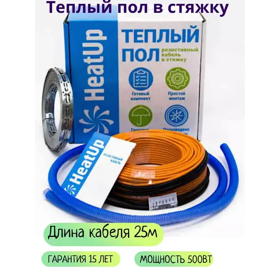 Электрический кабельный теплый пол в стяжку 25м, 500 Вт