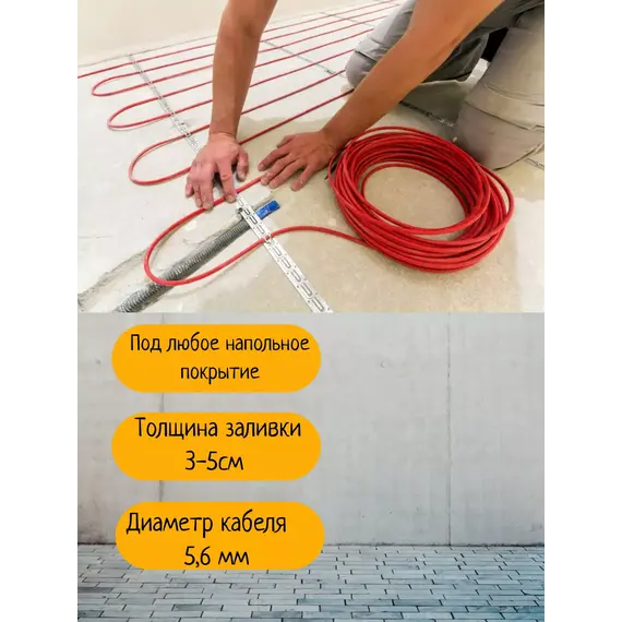 Электрический кабельный теплый пол в стяжку 50м, 1000 Вт