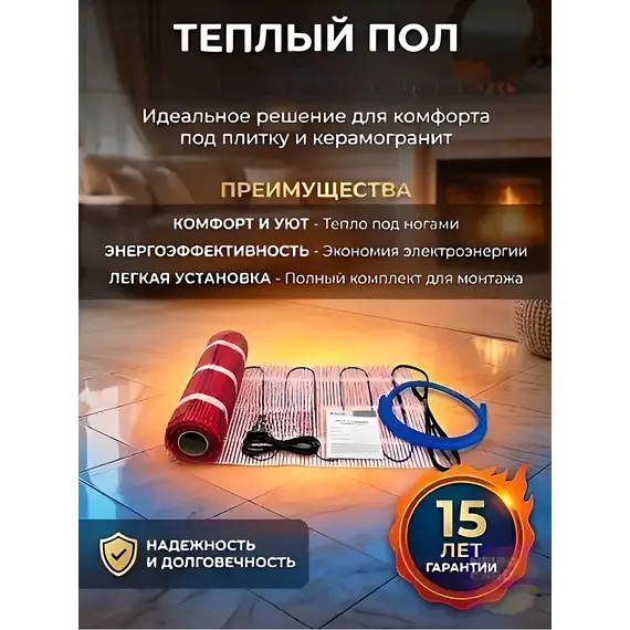 • Эффективность: инновационный нагревательный мат обеспечивает равномерное распределение тепла по всей площади пола, экономя энергию и обеспечивая оптимальный микроклимат в помещении.