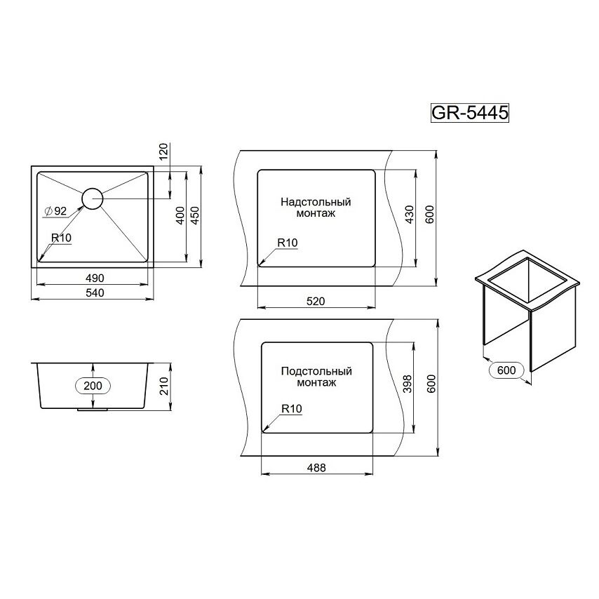 5445U, СТАЛЬ САТИН, стальная кухонная мойка