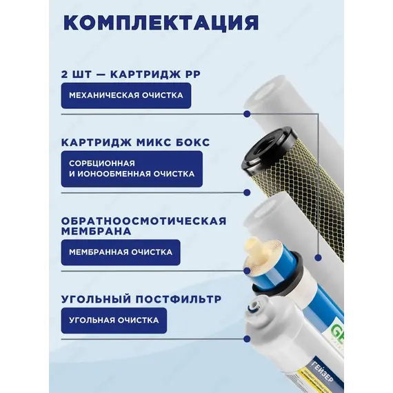 Максимальная степень очистки воды, возможная в домашних условиях;"Удаление вредных примесей, включая бактерии и вирусы;