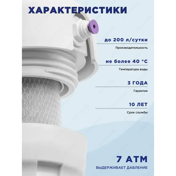 Система работает при давлении в подводящей магистрали не менее 3 атм.;"Глубокая очистка воды, удаление бактерий и вирусов;