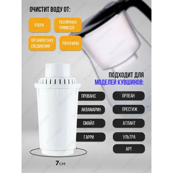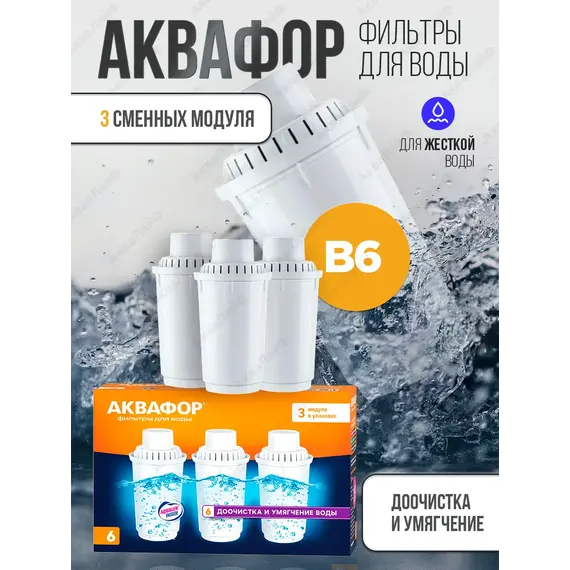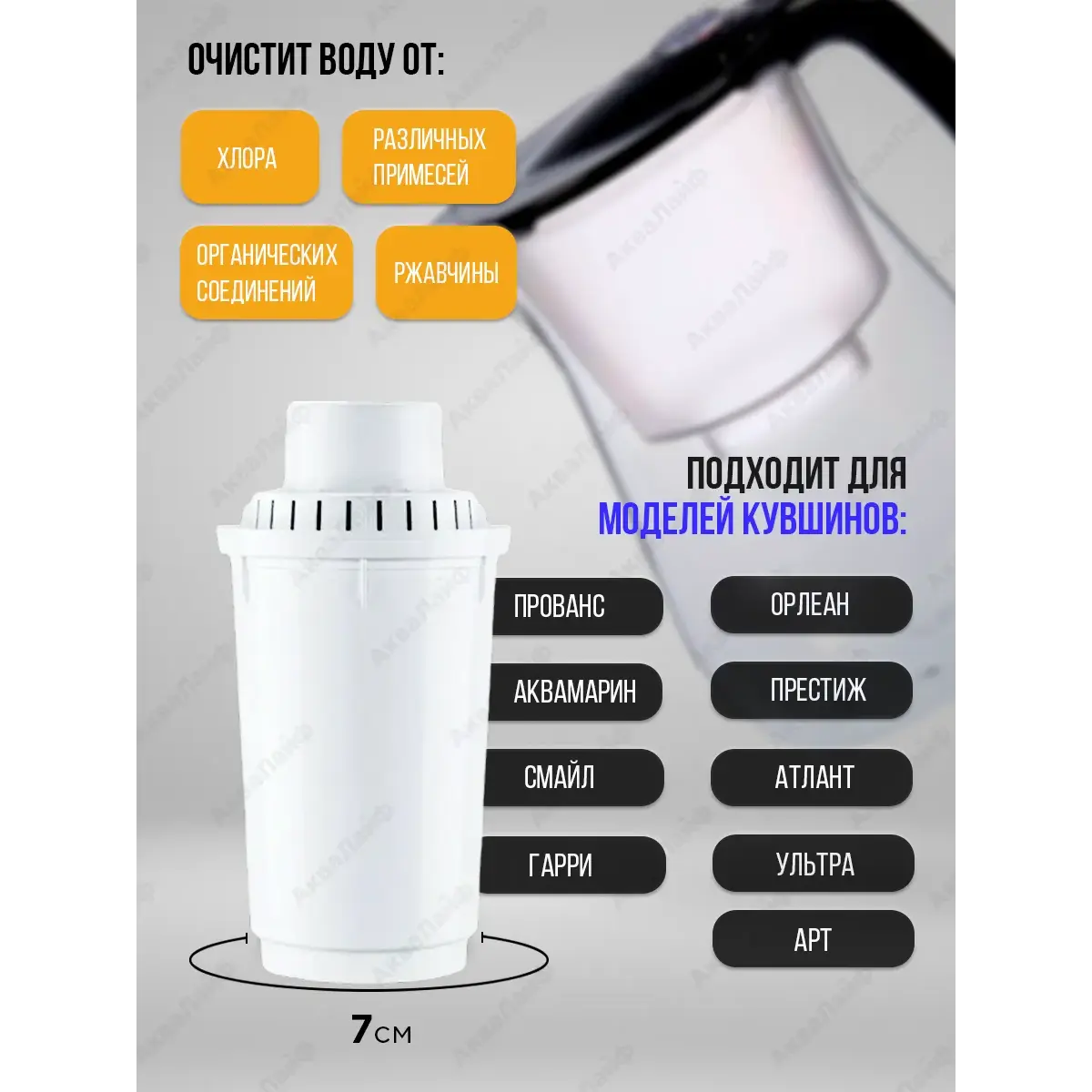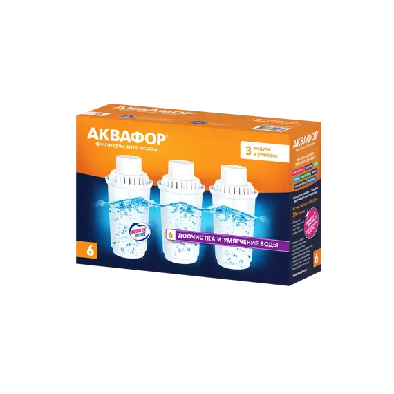 Используется в кувшинах c круглым гнездом посадки картриджа диаметром 7 см. Подходит для моделей кувшинов Прованс, Орлеан, Гарри, Премиум, Престиж, Ультра, Смайл, Арт. Сменный картридж В6 очистит воду от самых распространенных примесей, включая хлор, фенолы, ржавчину, соли жесткости. Ресурс сменной кассеты В6 - 300 литров, комплект фильтров из двух штук обеспечит до 600 литров чистой воды для семьи из 3 человек на срок до 3-4 месяцев. Комплекты дополнительно упаковываются в гофрокоробки для большей сохранности