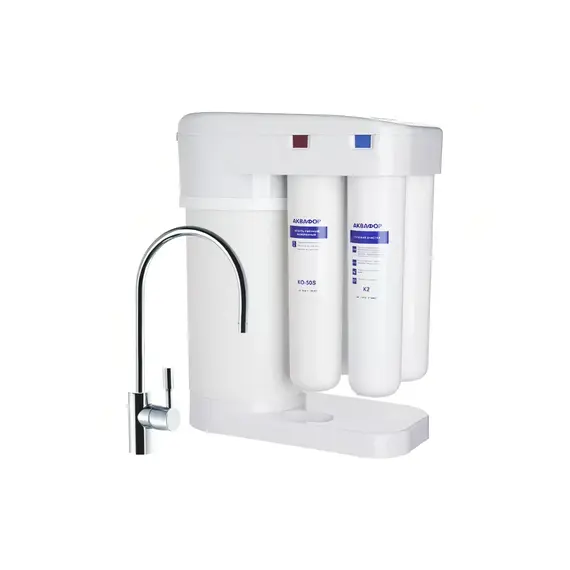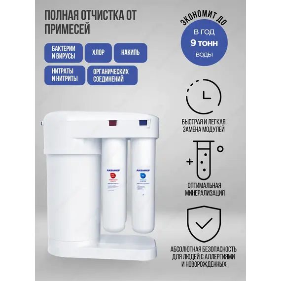 Мини-завод питьевой воды для большой семьи. Абсолютная безопасность для людей с аллергиями, чувствительным пищеварением и новорожденных. Аквафор Морион 101S Обратноосмотическая система DWM 101S Морион полностью устраняет жесткость причину накипи и любые примеси из водопроводной воды, включая бактерии, паразитов и вирусы. Компактнее и экономичнее классического обратноосмотического фильтра. Экономит до 9 тонн воды в год Инновационный водоводяной бак экономит до 9 тонн воды в год относительно классических обратноосмотических систем с водовоздушным баком. Он намного компактнее обычного, поэтому Морион занимает в 2 раза меньше места под мойкой, чем стандартная обратноосмотическая система. Скорость набора воды у Мориона в 2 раза выше, чем у классического обратноосмотического фильтра. Оптимальная минерализация Mg и CaМинерализация очищенной воды возвращает ей привычный вкус и помогает в профилактике сердечно сосудистых заболеваний. Плюс дополнительный комлект модулей: