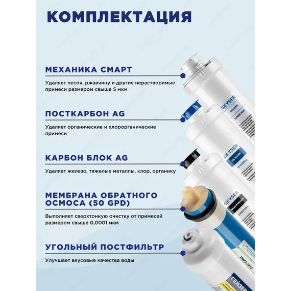 Механика Смарт – удаляет песок, ржавчину и другие нерастворимые примеси размером свыше 5 мкм. Защищает от механических загрязнений.