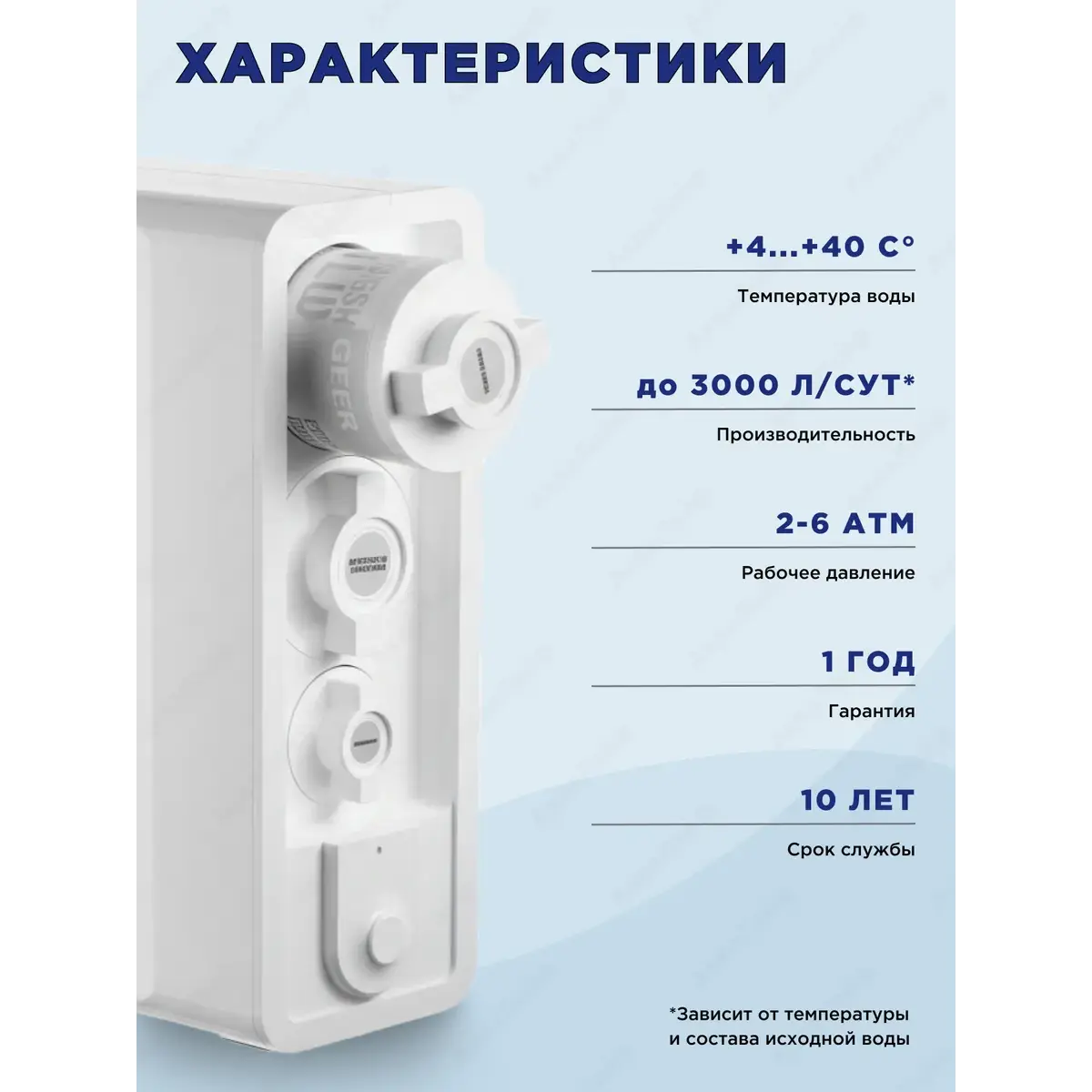 Производительность (при температуре исходной воды 25°С), л/сутки*: 3000;