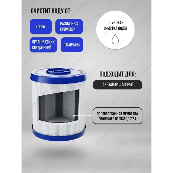 Сменный модуль для подготовки питьевой воды В150 PRO предназначен для использования с водоочистителями Фаворит. Он одновременно удаляет из воды ржавчину, коллоидное железо, песок, другие видимые загрязнения, а также химические примеси органические соединения, тяжелые металлы, хлор и другие токсины и аллергены.Модуль 150 PRO состоит из двух слоев. Внешний слой модуля сделан на основе запатентованного материала нового поколения АКВАЛЕН 4 и мелкого активированного кокосового угля. Из воды удаляются крупные частицы размером от 20 мкм.Внутренний слой модуля В150 PRO еще одна разработка АКВАФОР карбонблок с волокном АКВАЛЕН для глубокой очистки воды. Этот слой отфильтровывает мелкие частицы размером до 5 мкм и убирает из воды растворенные примеси.Инновационные разработки в двух фильтрующих слоях помогли увеличить ресурс В150 PRO на 25% по сравнению с модулем предыдущего поколения В150.