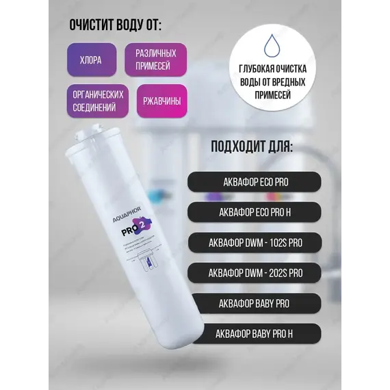 Модуль Pro 2 осуществляет основную фильтрацию от невидимых химических загрязнителей, токсических веществ и аллергенов.
