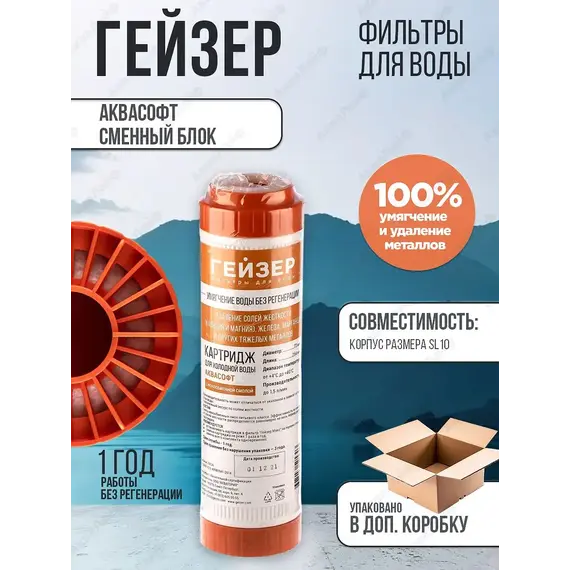 Композитный картридж, удаляет из воды избыточные соли жесткости. Фильтрующей средой служит специальная смесь ионообменных смол питьевого класса. Это позволяет равномерно распределить ресурс загрузки на весь период работы.