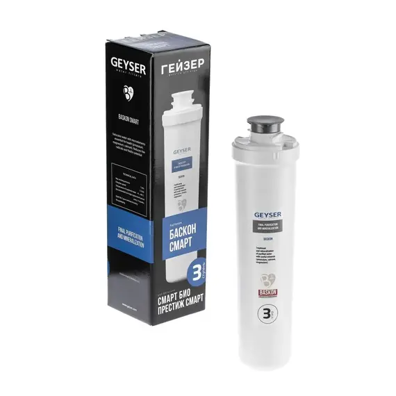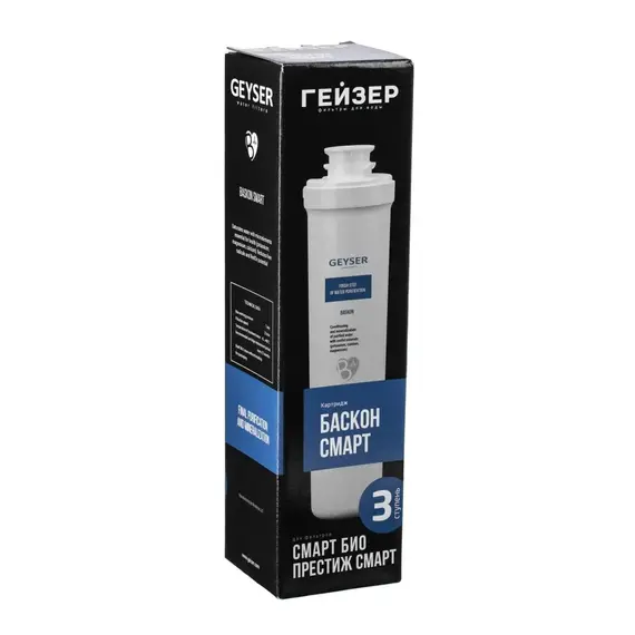 Картридж Баскон Смарт применяется в бытовом фильтре Гейзер Смарт Био 511 (для мягкой воды) и системе обратного осмоса Гейзер Престиж Смарт.